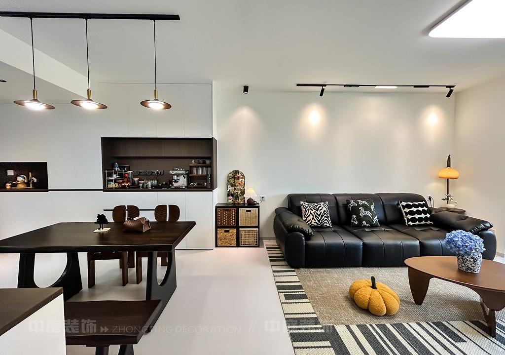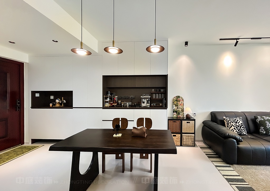 這套房從普通居所蛻變為都市療愈場,客餐廳以黑白棕營造高級松弛感,咖啡角、藝術畫、游戲區藏著主人對生活的熱愛,餐廚煙火與雅致共生,每處角落的陳設都是靈魂的妥帖安放,是裝滿故事與溫度的私屬堡壘。