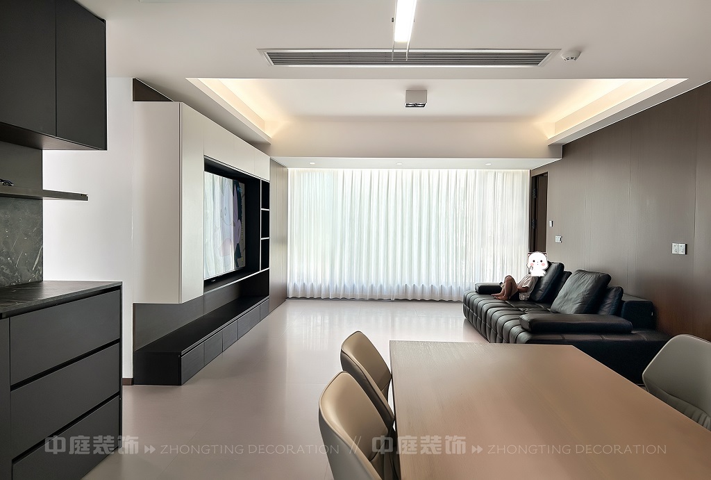 瀏覽量:29客廳以現(xiàn)代黑白灰極簡(jiǎn)風(fēng)格為核心,大面積白紗簾引入自然光線,黑色皮質(zhì)沙發(fā)質(zhì)感高級(jí)。開(kāi)放式布局,深灰櫥柜與木質(zhì)餐桌形成材質(zhì)對(duì)比,線性吊燈提升精致感,功能與美學(xué)兼具,營(yíng)造現(xiàn)代簡(jiǎn)約的烹飪用餐氛圍。輕柔窗簾與柔和燈光,打造靜謐休息空間。精致的材質(zhì)選擇與合理的功能規(guī)劃,詮釋了“少即是多”的現(xiàn)代簡(jiǎn)約居住美學(xué)。